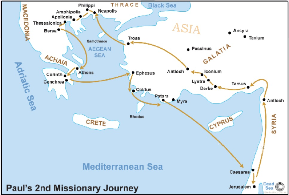 After leaving Corinth, Paul briefly visited Ephesus (Acts 18:18–21) before returning to Antioch (Acts 18:22), thus completing his Second Missionary Journey.
